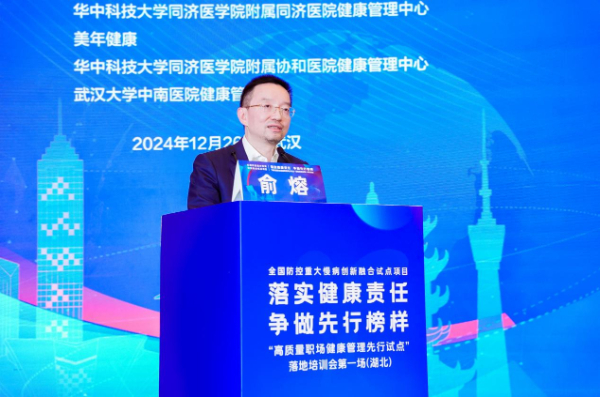 12月26日,以“落实健康责任,争做先行榜样”为主题的“高质量职场健康管理先行试点”第一场落地培训会在湖北武汉召开。
