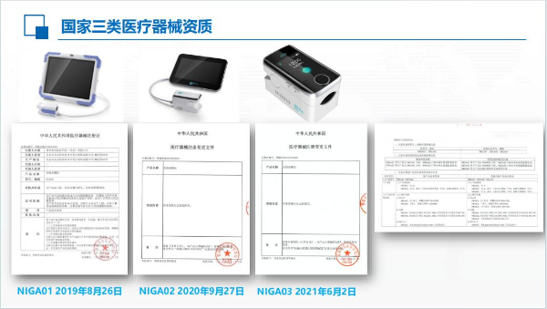 在审批注册方面,博邦芳舟无创血糖仪于2017年获得国家药监局颁发的“国家创新医疗器械”特别审批资质;2019年获得国家药监局颁发的首张“无创血糖仪”三类医疗器械注册证;2020年,博邦芳舟成为首家获批的北京市“注册人制度”试点单位;同时2020年和2021年,公司其他两款产品(NIGA02、NIGA03)分别获批增型注册,为产品的市场推广和临床应用提供了有力的保障。