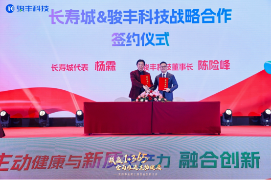 当天,骏丰科技与中国健康管理协会下属平台长寿城(北京)国际健康管理有限公司签署主动健康战略合作协议,中国健康管理协会长寿城工程筹委会秘书长杨霖与骏丰科技董事长陈险峰作为代表签约。未来,双方将就主动健康科普、智慧数字化社区试点等展开紧密合作,通过多渠道传播健康知识,提高国民主动健康素养。