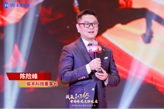 会上,骏丰科技董事长陈险峰以《主动健康与新质生产力融合创新》为主题发表演讲,他表示,2025年,骏丰科技开启“主动健康元年”,将以数智化传播制胜,实现主动健康与新质生产力的深度融合,全面、全速、全域推进主动健康理念落地,骏丰科技将携手各界力量,切实打造骏丰科技独有的主动健康IP,目标是打造1000名主动健康大使,1000个主动健康家庭、1000个主动健康管理中心。通过技术融合、品牌升级、组织优化及社会价值实践,不断提升用户健康管理、生命质量与服务满意度。