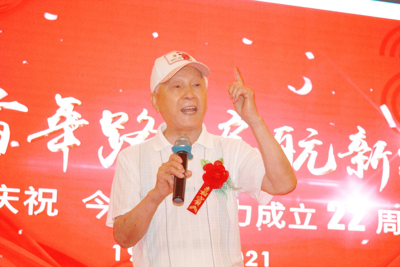 图为2021年88岁的万承奎教授在中国老年保健协会主办的中国老年健康促进行动公益活动上做健康报告。