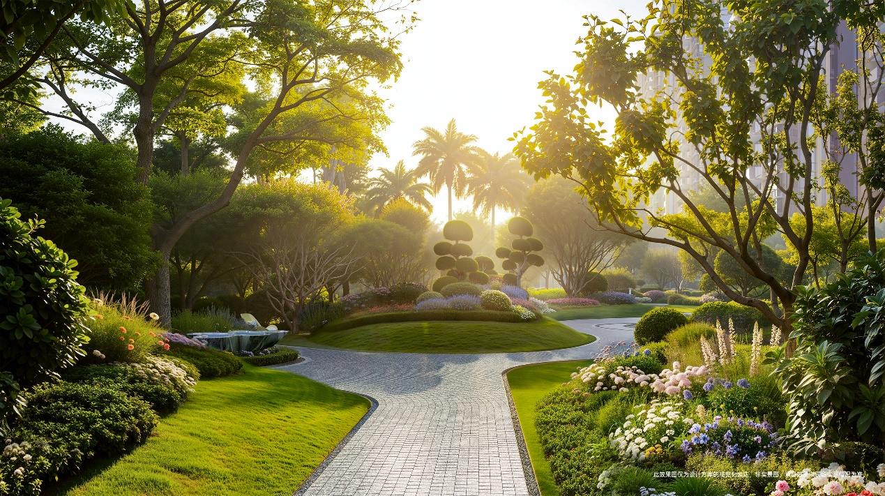 社区环境生态资产系统方面,进行了25年植物群落规划与设计,打造千亩自然生态系统,精心配植本土植物群落,构建具有高碳汇能力和生物多样性的立体绿化。以法国莫奈花园为蓝本,搭配约250种珍稀花草,打造约2万方莫奈花园,以芬芳香草疗愈与雾森系统,实现微环境 调节与超五感自然疗愈。通过遍布社区的传感器网络与智能喷淋、导风系统,自动调节社区温湿度,有效缓解城市热岛效应。利用特定植物与生态水景的组合,结合“森环系统”,显著提升园区负氧离子浓度,营造天然氧吧环境。