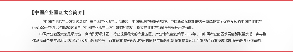 2016中国产业·园区大会11月9日-11月10日在上海启幕。本次大会由中国产业园区发展创新联盟及新华网主办,中国众创联盟、选址中国联合主办,决策者会议集团承办,上海市工业合作协会,上海工业投资(集团)有限公司,克而瑞信息集团等多家机构协办,且得到了上海市经济团体联合会/上海市工业经济联合会的大力支持。“2016中国产业地产百强榜”在会上隆重发布。华夏幸福,上海张江,招商局蛇口,华南城,联东集团,中关村,宏泰,天安数码城,临港,启迪领衔入选2016中国产业地产前十强。...【详细】