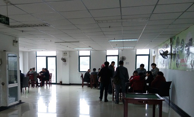 与儿童游乐场所相比,老年人活动的场所稍微少一点。一位在旭园住了3年的大妈介绍道:“这边有一个老年活动室,在物业二楼,很多人都喜欢去玩。”记者找到这个老年活动室后,发现里面摆了多张麻将桌,都坐满了人,旁边还有不少人围观。