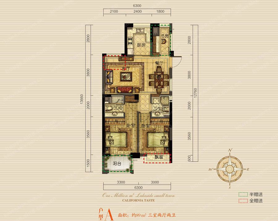 东海闲湖城,总占地1200亩,总建筑面积100万㎡,内拥15万㎡私家闲湖,是开发多年的城西大盘。产品方面从排屋到高层有多种不同类型,目前主推的是位于小区北部的印象加州组团,共300多套房源,目前在售1、10号楼,户型面积81、89、114、118平方米。