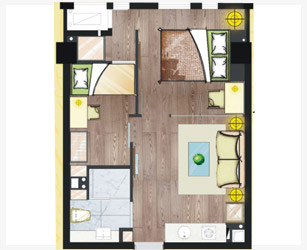 户型配置方面,天合御公馆书悦项目以小户型为主,约38、45、55㎡三种户型。从户型图分析,户型方正,两室两厅占多数,其中独创40平两房和50平三房的户型,使空间得到有效利用。而项目内配置的卧室、卫生间、开放式餐厨,外接的大型阳台,使项目小而精。