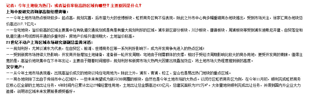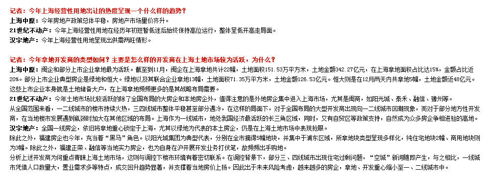 从本次拿地的企业来看,连夺三地的锦绣投资是初入上海市场。陆骑麟认为,初入上海市场的开发商往往为了站稳脚跟会出现不惜血本拿地的情况。