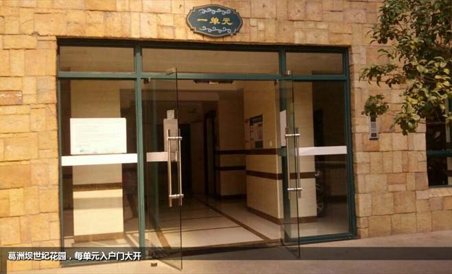 葛洲坝世纪花园小区每栋楼的单元入口处不设有门禁,外来人员也可入内,直接乘坐电梯到达业主家门。"这个门(单元入口)是没有关过,但是目前来说还比较安全,没有出过事",小区业主说道。