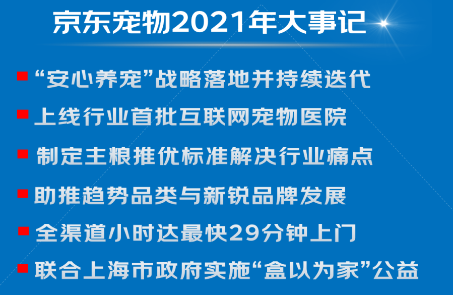 2021年,京东宠物落地“安心养宠”战略并对其进行多次迭代升级,多项对行业产生深远影响的创新业务和服务升级相继推出。