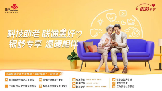 中国联通本次升级发布的“银龄专享”服务计划,是在用心倾听、用情响应,深入调研银龄客户服务需求和总结过去点状经验基础上,对助老服务进行体系化升级,完善优化了之前深受客户喜爱的举措,同时新增了更多满足客户需求和期待的服务,涵盖与老年人生活息息相关的便捷服务、温情陪伴、智趣生活三个主题、共10项服务举措,旨在为广大银龄客户提供更优质、更全面、更智慧的服务。