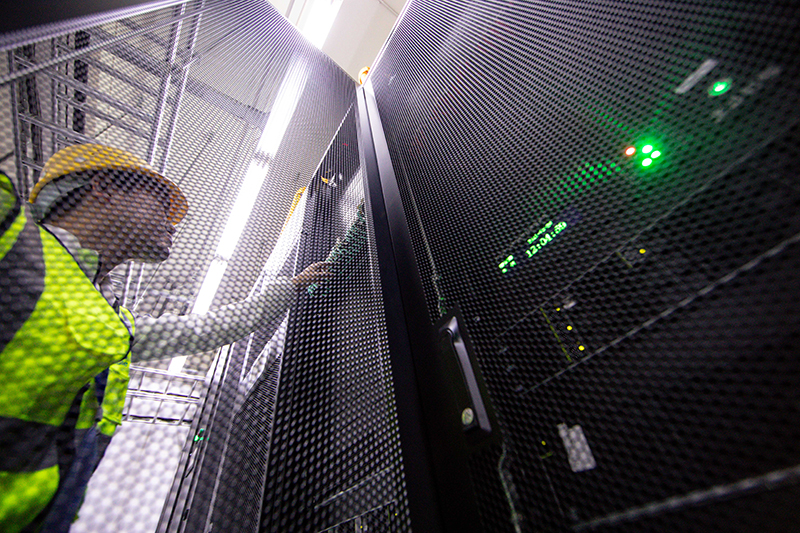 工作人员在位于贵州贵安新区的中国移动贵州数据中心机房内巡检。新华社资料图
