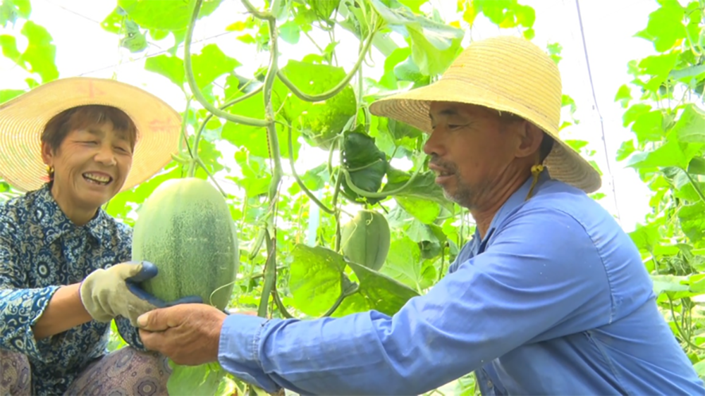 看到撂荒地还能收租金,越来越多的村民主动找到黄艳峰出租荒地,驼子村村集体流转地面积越来越大。为了充分利用好这些荒地,黄艳峰和“村两委”决定大力发展大棚蔬菜。2019年,利用湖北中烟广水卷烟厂和上级政府帮扶资金,驼子村新建4个1000平方米的温室大棚,种植反季节黄瓜、茄子、哈密瓜等蔬果,助力村民增收。驼子村一组村民黄伍租赁20个大棚,通过实施标准化、集约化生产,年种菜纯收入达20万元。