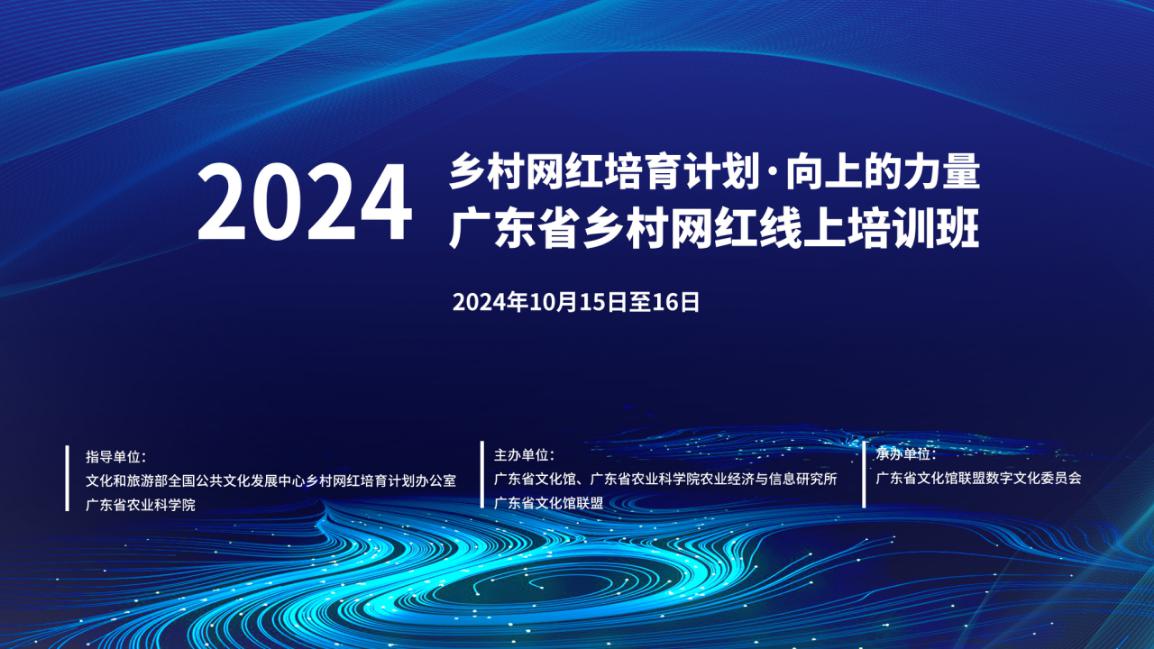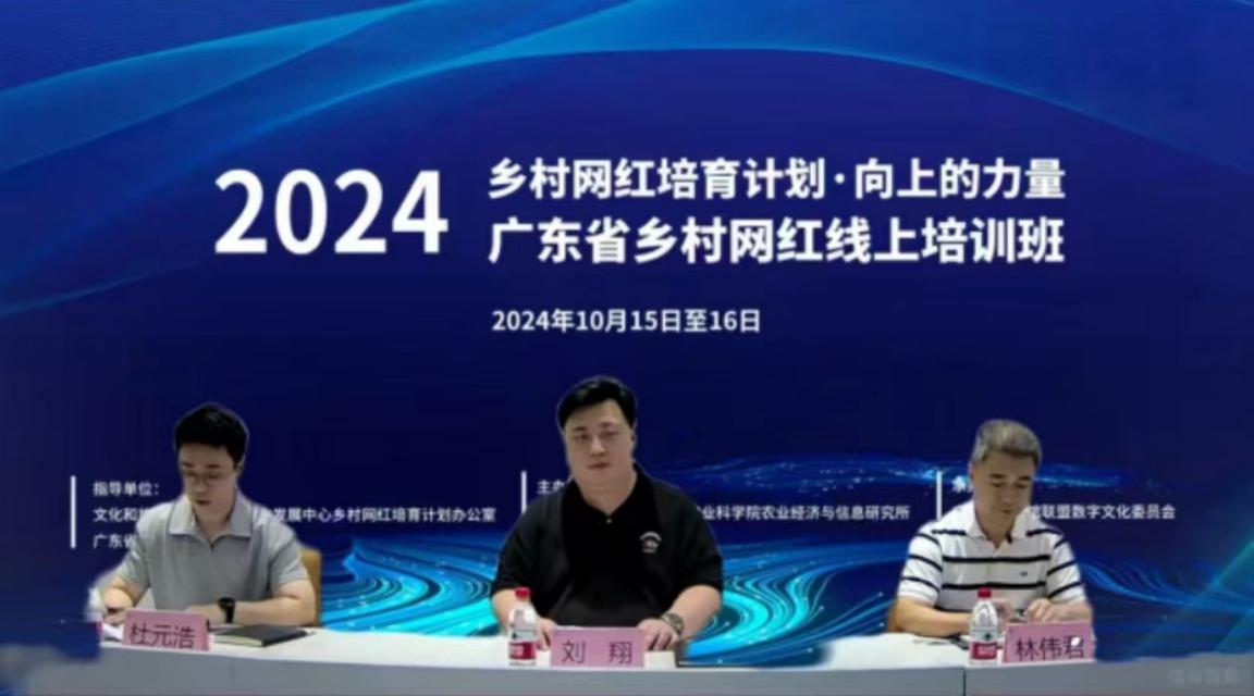 10月15日至16日,由文化和旅游部全国公共文化发展中心乡村网红培育计划办公室、广东省农业科学院指导,广东省文化馆、广东省农业科学院农业经济与信息研究所(以下简称“广东省农科院经信所”)、广东省文化馆联盟主办,广东省文化馆联盟数字文化委员会承办的“乡村网红培育计划·向上的力量暨2024年广东省乡村网红线上培训班”成功举办。来自全省各地共301名乡村网红学员和乡村网红培育工作负责人参加培训。