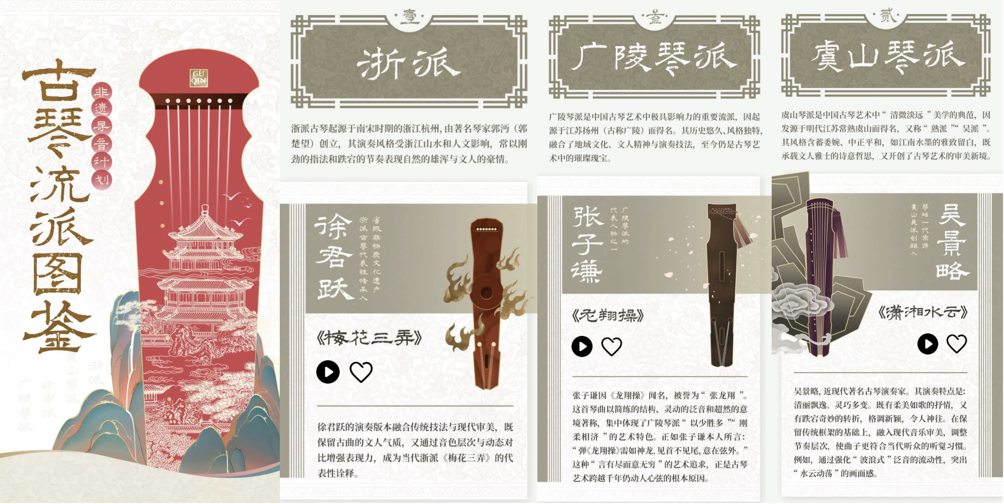 古琴承载着深厚的历史底蕴与艺术价值。然而,在现代社会的快节奏中,古琴独特的韵味与魅力难以被广泛感知。华为音乐敏锐地捕捉到了这一文化传承的痛点,携手多位古琴非遗传承人,共同打造了一系列高质量的古琴音乐作品。以创新科技为翼,首期“古琴流派图鉴”让沉淀千年的琴韵穿越时空,在现代人耳畔重新响起。这些作品不仅保留了古琴音乐的原汁原味,更通过华为音乐全曲库的超高清音频和空间音频技术,让听众可以亲身感受无损音质下,古琴那悠扬而深远的旋律,每一根琴弦的振动、每一次指法的变化都精准捕捉并还原,能够细腻地品味到古琴音乐的每一个细节;而空间音频让你沉浸在三维声场,感受这份古韵从四面八方而来,无论是浙派、广陵琴派、虞山琴派、蜀派等,例如《梅花三弄》《龙翔操》《潇湘水云》《阳关三叠》等,让“波浪式”泛音、滑音、按音等独特技法在脑中呈现出画面,散发出新的科技光辉。