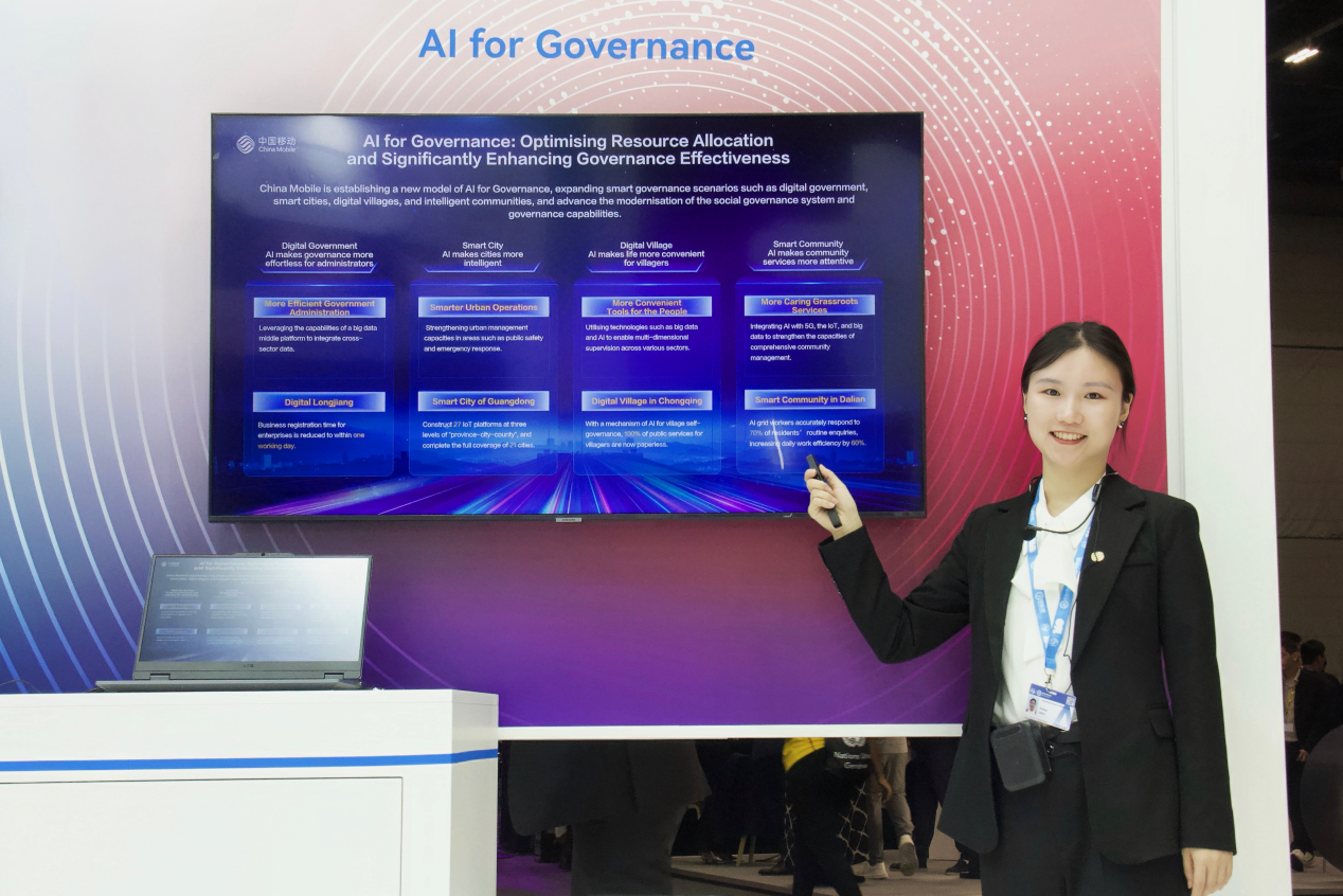 在现场全面展示了该平台通过AI技术赋能数字政府、智慧城市、数字乡村、智慧社区等智治场景。依托贯穿省、市、县、乡、村的信息基础设施,中国移动打造了更便捷的政务管理、更智慧的城市运营、更方便的惠民工具,不仅提高城市管理者的工作效率,更推动治理方式数智化转型,成为提升城市竞争力与居民幸福感的数字密钥。
