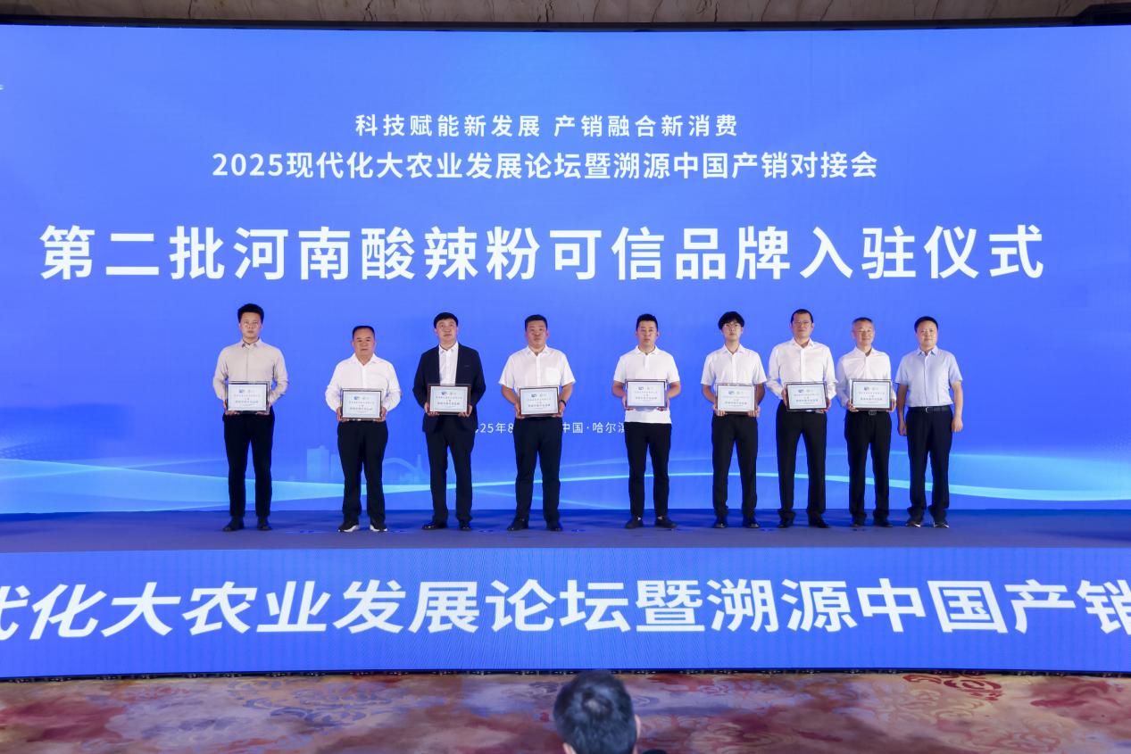 8月2日,作为“2025企业家太阳岛年会”重要活动,“2025现代化大农业发展论坛暨溯源中国产销对接会”在哈尔滨太阳岛举行。会上,来自河南省酸辣粉产业联盟的8家产业链企业被授予第二批河南酸辣粉“溯源中国可信品牌”,标志着河南酸辣粉产业在标准化、品牌化、数字化建设方面迈出重要一步。同时,首批赋有“溯源中国”溯源码的河南省丽星亿源食品有限公司和河南豫道农业科技发展有限公司两家的酸辣粉产品也在活动现场亮相。