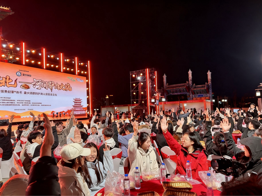 10月18日,“看见河北——河间驴肉火烧最大规模品鉴会吉尼斯世界纪录挑战活动”在沧州市南川老街朗吟楼南广场举行。此次活动由河北省文化和旅游厅主办,沧州市文化广电和旅游局、河北广播电视台承办,河间市驴肉火烧产业促进会、河间市文化广电和旅游局、运河区文化和旅游局等多单位协办,8家知名河间驴肉火烧品牌共同参与,旨在以美食为媒,通过创新形式与多元融合,打造一场具有广泛影响力与深远意义的城市文化盛宴,全方位提升沧州的城市知名度、美誉度与吸引力。