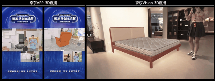 在2025年京东618购物节期间,京东XR创新团队首次将“裸眼3D广告”“3D智能居家搭配工具”“3D直播”等全场景3D技术矩阵应用于电商消费场景,覆盖3C数码、家电家居、美妆商超等核心品类。通过沉浸式交互体验解决传统2D购物的“视觉落差”痛点,推动消费场景从“看图选购”向“立体感知”全面升级。