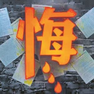 图为河南省安阳县警示教育基地思廉厅中的忏悔墙,以违纪违法干部的忏悔书为背景,突出泣着血泪的“悔”字。邵焕 摄