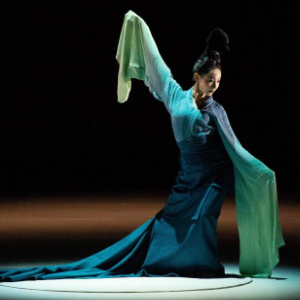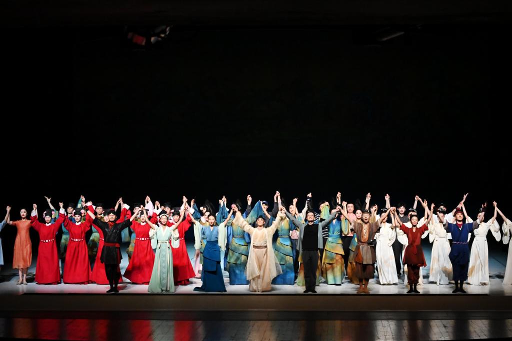 台上,舞者绛唇高髻、长袖翩跹,以绚烂之姿,勾勒出如诗如幻的无垠山河,将中国式古典美娓娓道来。