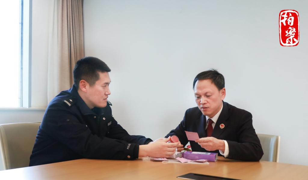 图为承办检察官与公安民警研判涉案减肥产品。(苏州工业园区检察院供图)