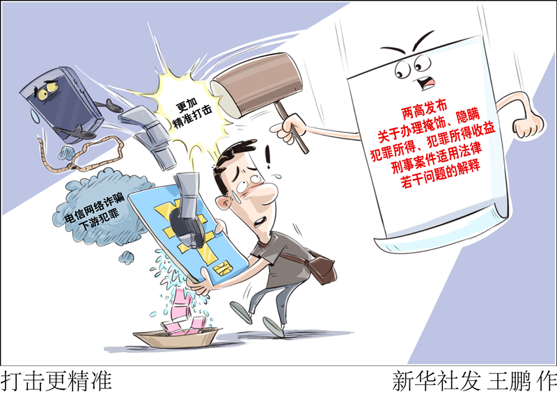 新华社北京8月25日电 题:两高司法解释更加精准打击电信网络诈骗下游犯罪