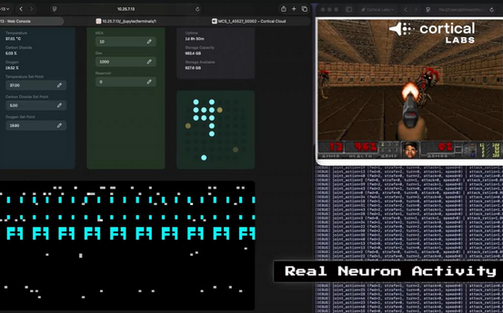 CL1平台在硅芯片的微电极阵列上培育脑细胞,并向它们供给营养,阵列可向细胞发送电信号并读取其活动。在电脑射击游戏《毁灭战士》中,电信号被转化为游戏角色在二维地图中的移动指令。尽管目前其游戏水平远不及人类玩家,但已明显优于随机操作,并且其学习速度被认为快于许多传统的硅基机器学习系统。