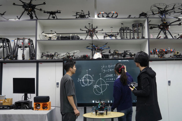 2023年11月4日,在上海交大机器人研究所的无人系统实验室,学生在进行讨论。新华社记者 刘颖 摄