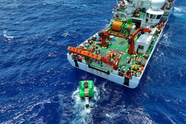 2024年6月22日,上海交通大学自主研制的深海重载作业采矿车工程样机“开拓二号”海试现场。新华社发(上海交通大学供图)