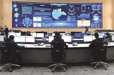 2019年10月23日,大兴区“接诉即办”调度指挥中心大厅,屏幕上显示出“接诉即办”情况。资料图片 新京报记者 吴宁 摄
