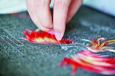 设计,几易其稿;技法,反复推敲。他对扇面上金凤凌空的设计很满意,但仍遇到难题——如何呈现背景中星光满天的效果?张雪决定将缂丝与苏绣结合起来。