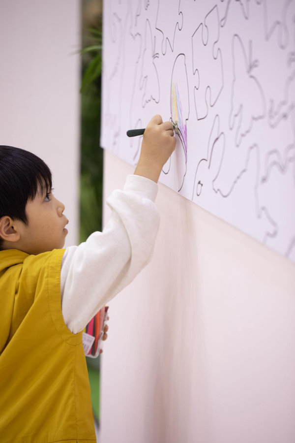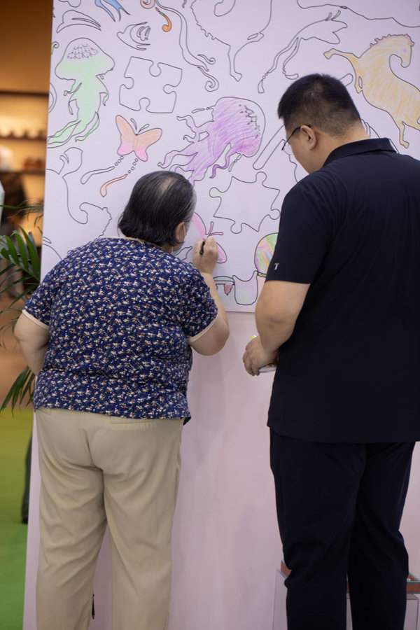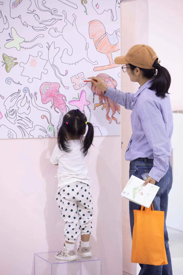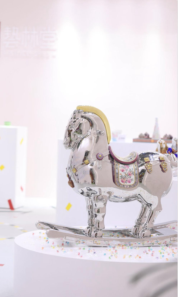 “这次展览的主题叫‘像孩子一样’,立意上,希望大家找回童心,找回本真的自己,会为了一点点新的发现和改变欢呼雀跃。”艺林堂“第三代堂主”余寅介绍到,艺林堂不仅在颜色上下足了功夫,还研制出一种新的叠金彩工艺。