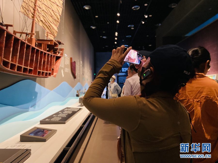 采访团成员在中国(海南)南海博物馆拍摄。新华网 宿鑫 摄