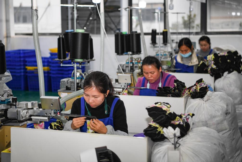 2023年12月15日,在位于秀山工业园区中小企业孵化园的重庆常隆纺织有限公司,工作人员在生产车间作业。新华社记者王全超 摄