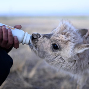 “这三只小家伙都是去年藏羚羊迁徙产仔时,我们从‘藏羚羊大产房’卓乃湖救助回来的,现在它们已经快半岁了,你看它们吃得多香。”才文多杰一边将“流着汗珠”的奶瓶喂给小羊,一边观察着小藏羚羊的身体状况。