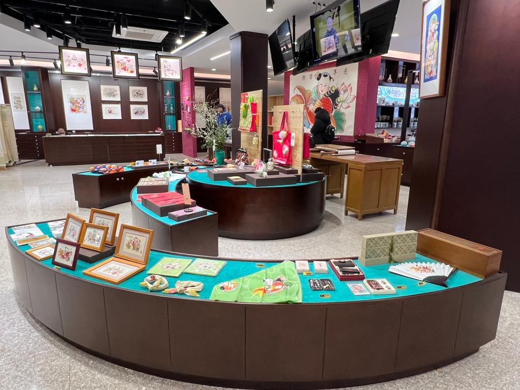 天津古文化街上的杨柳青画店内正在售卖丰富的文创产品。新华社记者白佳丽 摄
