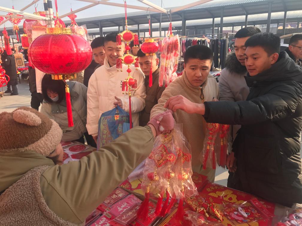 马新华在大集上卖货20余年,平日里卖帽子,进入腊月开始卖春联。“这些年春联的款式不断升级,灯笼、年画、中国结等挂饰种类也越来越多。人们喜欢买档次高点的,多买几样,装饰屋里屋外,更讲究过年气氛了。”马新华说,一副副寓意吉祥的春联寄托着人们对新一年美好生活的向往。一年又一年,他也感受到人们生活变得越来越好。