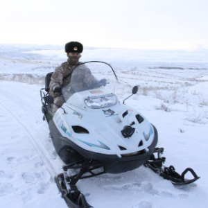 到了巡边时间,记者跟着几名战士驾驶摩托雪橇出发。起伏的柏油路上盖着一层厚厚的雪,不远处,塔斯提河蜿蜒流淌。虽然当天气温不算太低,但行驶中,风沙夹杂着雪粒快速拍打在脸上,没过一会儿,坐在后座的记者就被冻得“想找个地方躲起来”。