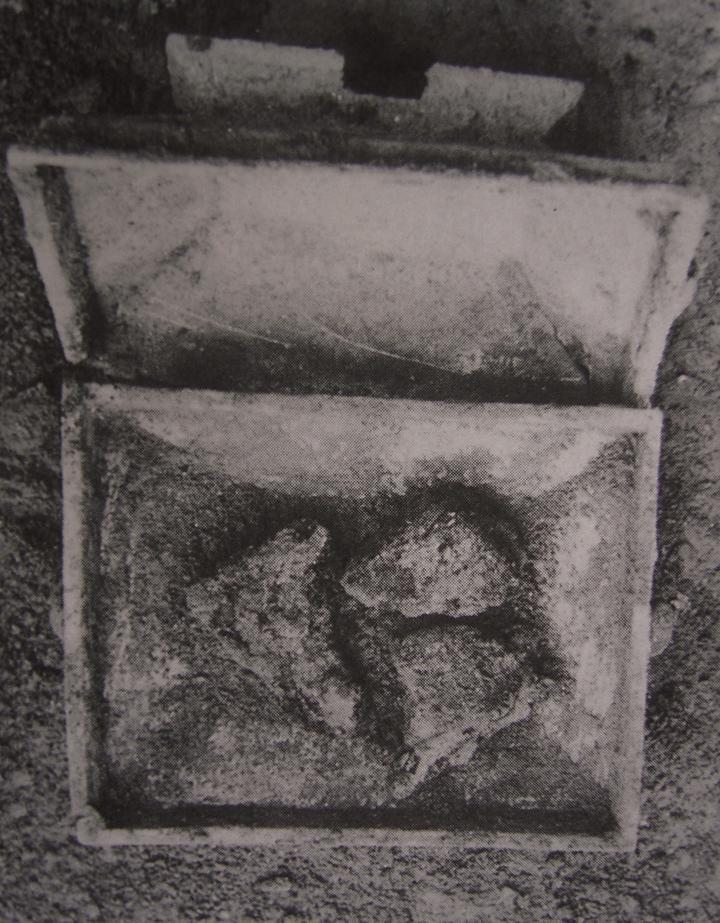 “铜簠出土时上下锈蚀在一起,用手铲慢慢撬开后发现,其中排放着黄色的三角形食物,长边大概有5到6厘米,外观酷似水饺,表面覆盖着一层白色粉末,风一吹就消散了。当用竹签轻轻拨动这些食物时,它们碎裂开来,里面有馅状屑物,但已无法辨认是什么馅。”王冬梅说。