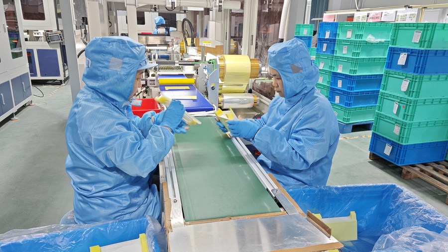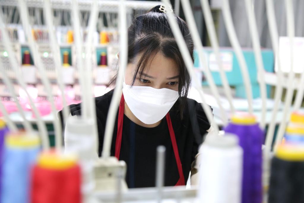 瑞能服帽生产车间内工人正在赶制订单。新华社发