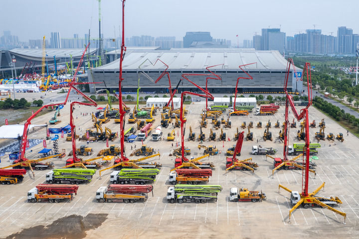 这是2023年5月15日在长沙国际会展中心拍摄的第三届长沙国际工程机械展览会户外展区(无人机照片)。新华社记者陈思汗 摄
