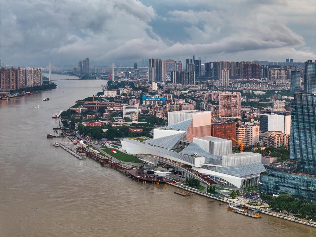 4月27日拍摄的白鹅潭大湾区艺术中心(无人机照片)。新华社记者 刘大伟 摄