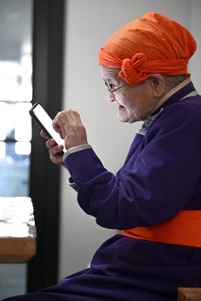 新华社呼和浩特5月12日电(记者王春燕、刘懿德)生活在内蒙古自治区四子王旗的82岁老人都贵玛,被人们亲切地称为“草原最美的额吉”,她与28个“国家的孩子”的故事曾感动了无数人。2019年9月29日,在中华人民共和国国家勋章和国家荣誉称号颁授仪式上,都贵玛被授予“人民楷模”国家荣誉称号。在都贵玛善良与无私的母爱背后,她还有着大众并不熟悉的一面:她爱手机上网,有自己独特的审美,对家乡有着深沉的爱。
