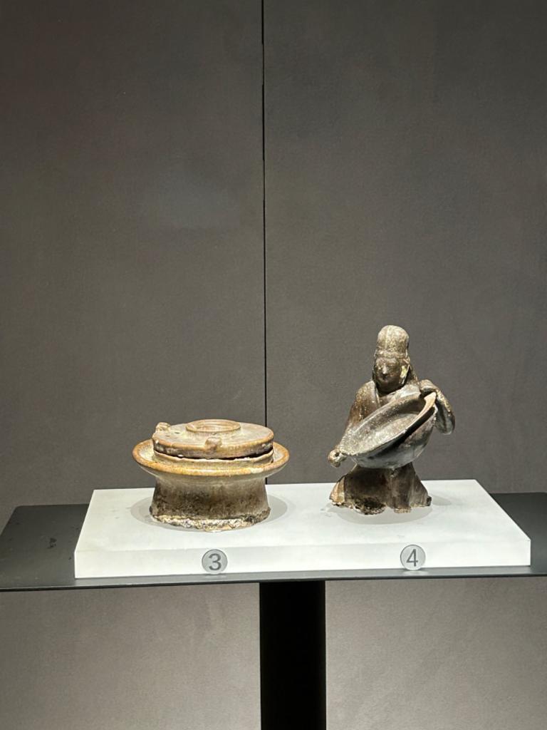 大同市博物馆展出的釉陶执盆俑。新华社记者 李子怡 摄