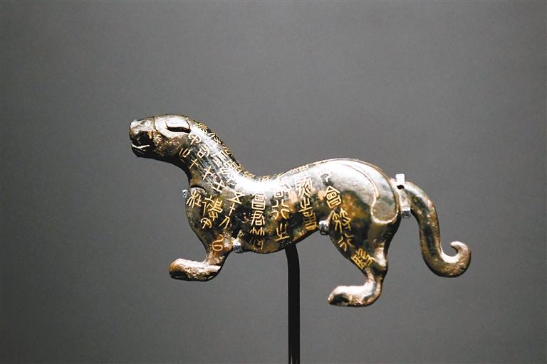 陕西历史博物馆秦汉馆展出的杜虎符。(记者 郝钟毓 首席记者 李明 摄)