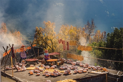 2013年,互联网上还搜不到“晒秋”的词条。最开始,篁岭在小众摄影圈中走红,随着一张张满载乡愁的晒秋照刷遍互联网,篁岭晒秋迅速“出圈”。