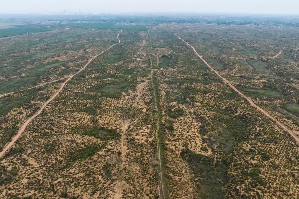 榆林神木市毛乌素治沙造林基地内建设的人工林(无人机照片)。新华社记者 邵瑞 摄