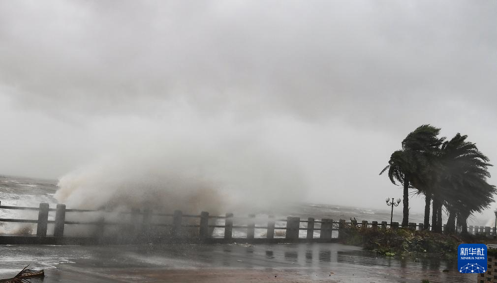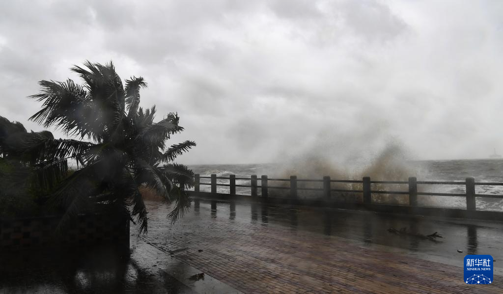 这是9月6日在台风“摩羯”登陆前在海口市美丽沙路附近海边拍摄的海浪。新华社记者 杨冠宇 摄