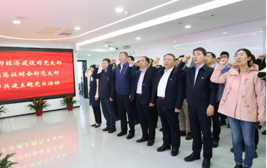 经济建设司党支部联合有关部门基层党组织开展主题党日,组织全体党员重温入党誓词。
