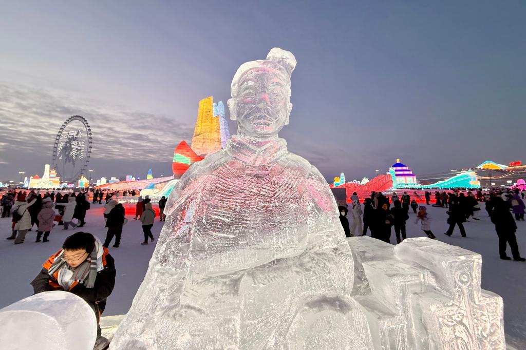 冰天雪地里,一场与历史文化的奇妙邂逅正在上演。在哈尔滨冰雪大世界园区,五尊“冰”马俑冰雕正在加紧雕刻,有跪姿也有站姿,姿态端正、神情严肃。网友留言“兵马俑到哈尔滨成了‘冰’马俑”,成为网络热梗。